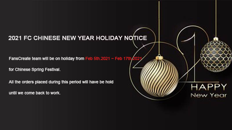 FC would like to inform you that we will be closed for the Chinese New Year Holiday from 5th Feb to 17th Feb 2021, and we will re-open on Thursday, 18th Feb 2021.